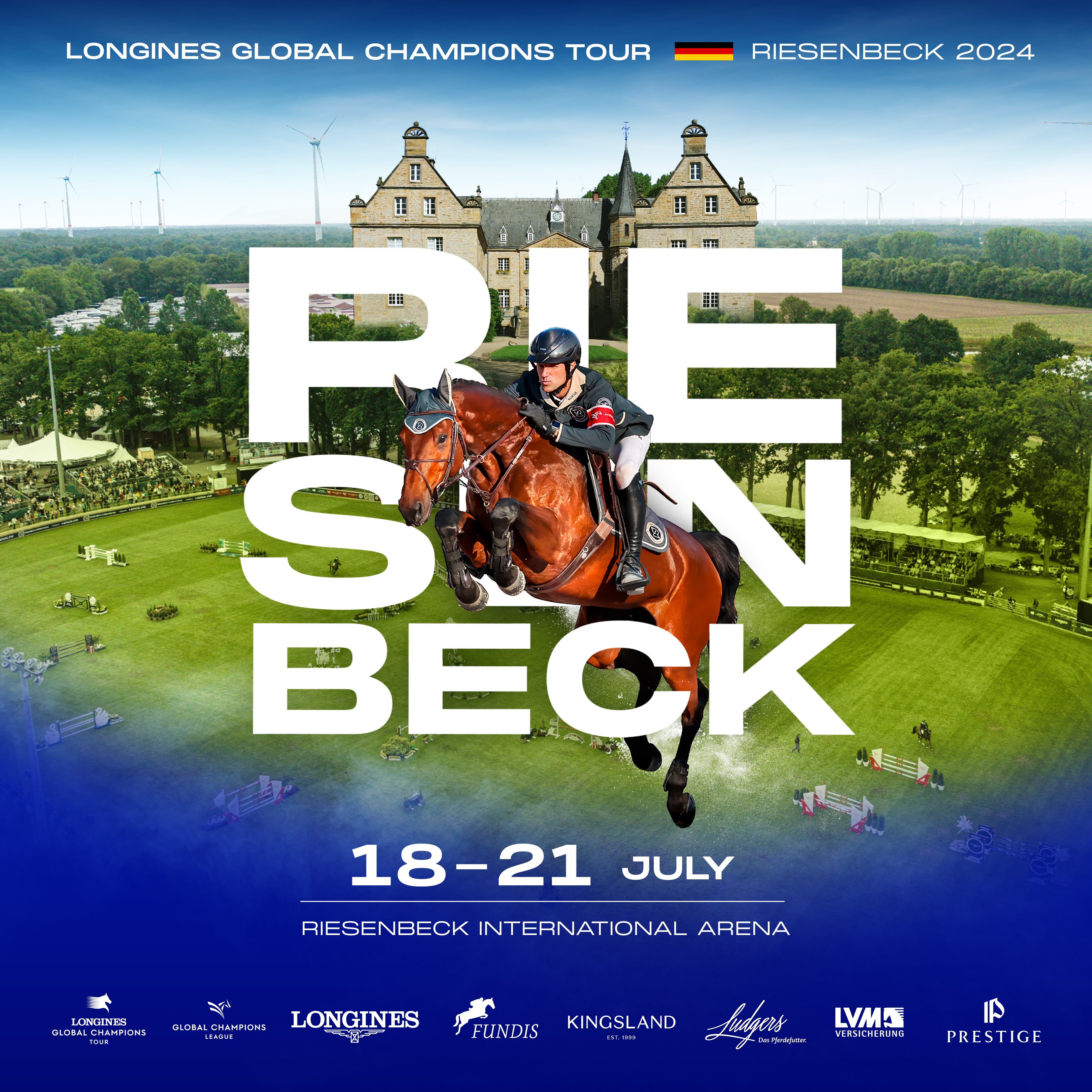 Vom 18. bis 21. Juli 2024 treffen sich erneut die besten Springreiter und Springreiterinnen der ganzen Welt in Riesenbeck, um in der LGCT und GCL wertvolle Punkte zu sammeln. Neben den Highlights, dem Longines Global Champions Tour Grand Prix am Sonntagnachmittag und dem Teamspringen der Global Champions League am Samstag, findet bereits zum zweiten Mal die Deutsche Meisterschaft der U25 Springreiter in Riesenbeck statt. In drei Wertungsprüfungen treten die besten Nachwuchssportler Deutschlands gegeneinander an und reiten um den Titel. Sichern Sie sich heute schon Ihre Tickets, um dabei zu sein!